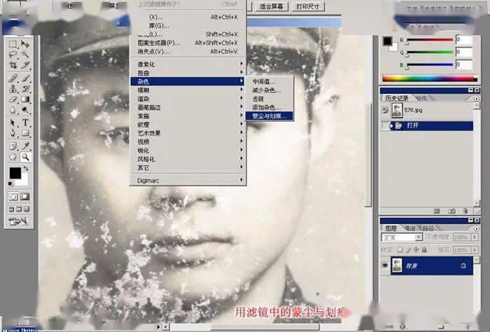 2.用滤镜中的蒙尘与划痕处理掉较小的脏点